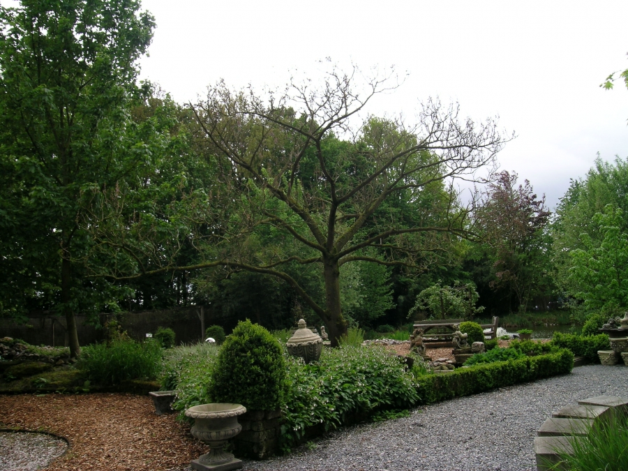 Zicht op onze tuin. Onze Paulownia tomentosa- de keizersboom, is hier nog zonder blad.