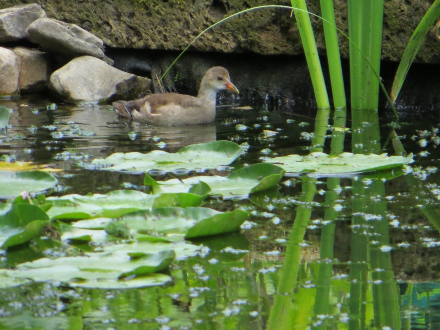 Een kuiken van ons koppeltje waterhoentjes